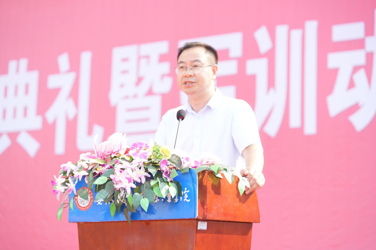 在军训动员大会上,副校长付贤政作军训动员。付贤政结合纪念中国人民抗日战争暨世界反法西斯战争胜利80周年阅兵式让同学们深刻认识到军训的重要意义,他希望同学们要学习人民军队“听党指挥、能打胜仗、作风优良”的光荣传统。做到一切行动听指挥,学习人民军队艰苦奋斗、英勇顽强的优良作风。要培育“团结就是力量”的集体主义精神。要互帮互助,团结协作,共同维护集体的荣誉,展现我们国防学子的良好精神风貌。要树立“天下兴亡,匹夫有责”的家国情怀。将个人成长与国家命运紧密相连,把在军训中激发出来的爱国热情、锤炼出来的坚强意志、培养出来的优良作风,转化为刻苦学习、奋斗成才的强大动力,为将来担当民族复兴大任贡献青春力量。