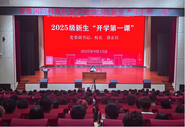 9月15日晚,校党委副书记、校长徐正红以“厚德强能砺青春,知行合一赴新程”为题,为新生讲授第一课。他从学校艰苦奋斗的发展历程和深厚的军工文化底蕴讲起,强调学校始终扎根革命老区、服务军工产业,形成了鲜明的育人传统和军工文化特色,培养了大批奋战在国防军工系统和地方经济社会一线的优秀人才,为安徽省国防科技工业与区域经济发展提供了有力支撑,赢得了安徽军工“黄埔军校”美誉。徐正红勉励新生,奋斗是青春最亮丽的底色。站在新征程起点,希望大家秉承“军魂育人、追求卓越”的办学理念,践行“厚德、强能、励志、笃行”的校训,坚定理想信念,明确人生方向,将个人成长融入国家与民族的事业中,让青春在奉献与奋斗中绽放光芒。