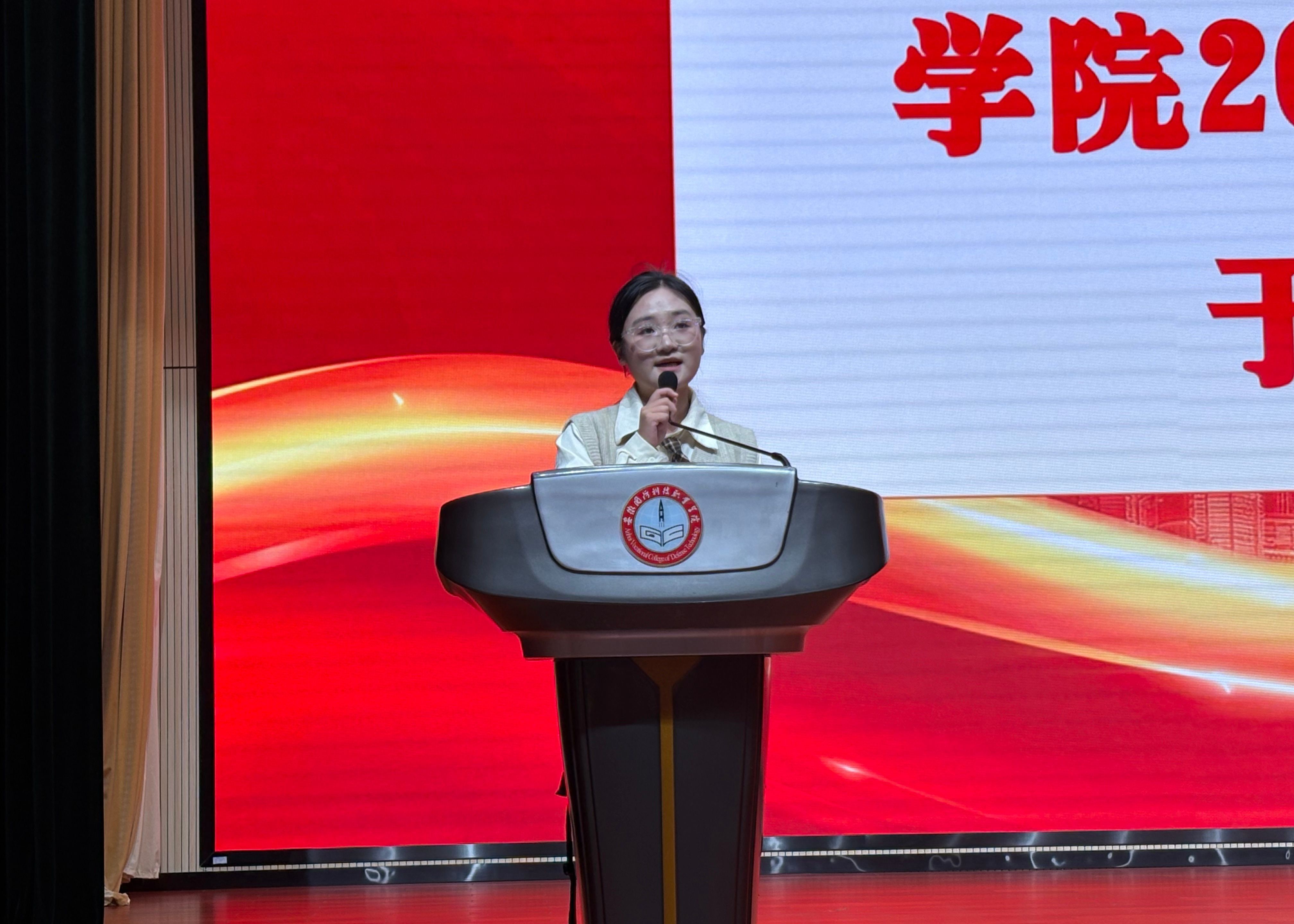 优秀教师代表黄惠在发言中以育人初心为核心主线,结合自身多年教学与育人经历,向新生们传递了深耕学业、践行实践的治学理念。她表示,教师团队将以专业的学识、热忱的态度为学子们保驾护航,既是传道授业的引路人,也是成长路上的同行者,鼓励新生们在探索中求真知,在实践中长本领,与学院共成长。