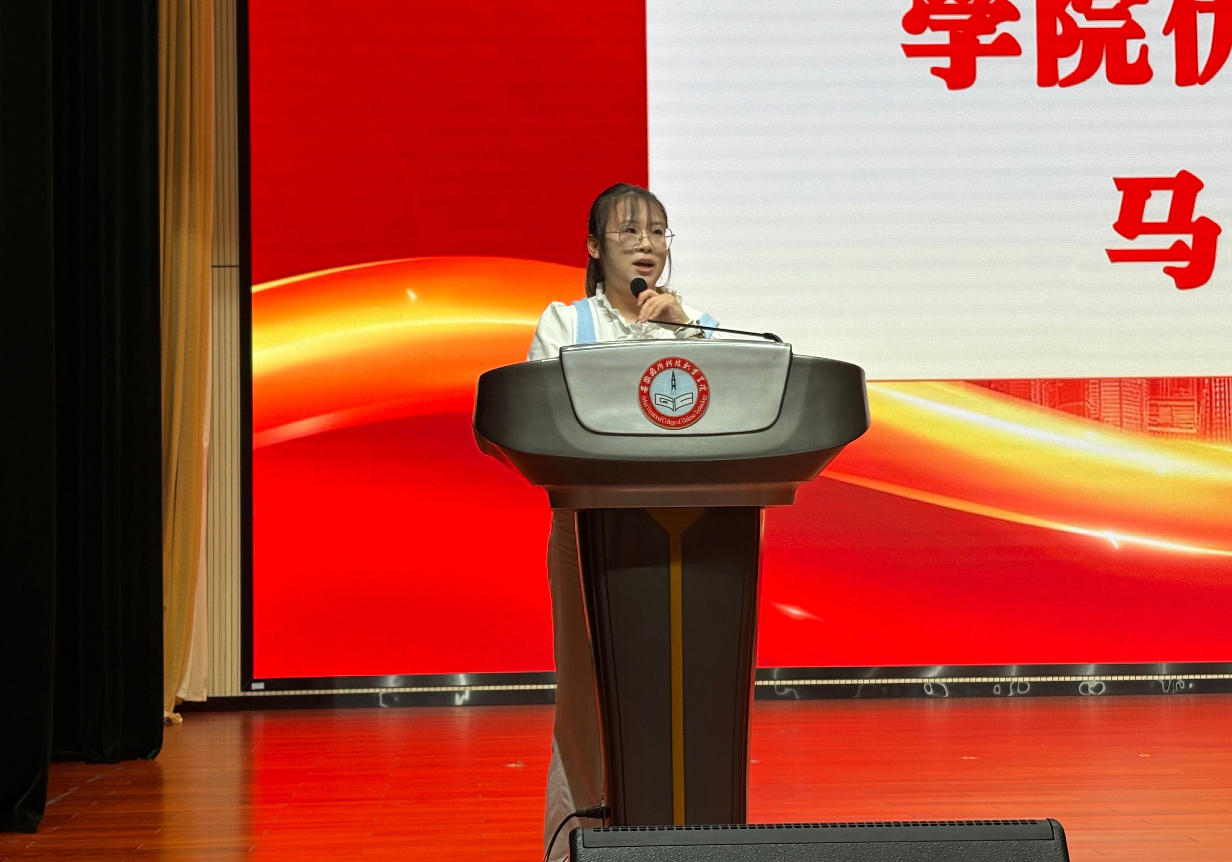 “请学院放心,请学长学姐放心!我们必将传承经贸精神,书写青春答卷!”25级新生代表于芯雨表示,将在技能锤炼中练就报国本领,接过前辈们的拼搏接力棒,让青春在矢志奋斗中绽放光彩,其昂扬的姿态赢得全场热烈掌声。