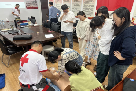 在实操演练环节,参训辅导员学习热情高涨,纷纷上前在模拟人教具上进行心肺复苏按压和人工呼吸练习,并认真演练了创伤包扎与海姆立克急救法等技能。培训师们在一旁耐心指导,及时纠正不规范动作,确保每一位教师都能准确掌握急救技术的核心步骤。现场互动频繁,学习氛围浓厚。培训极大地提高了我院学工人员应对突发事件和意外伤害的处置能力。参与人员纷纷表示,本次培训非常及时和必要,不仅学到了科学的急救知识,更通过实操克服了紧张心理,增强了在紧急情况下敢于施救、正确施救的信心。