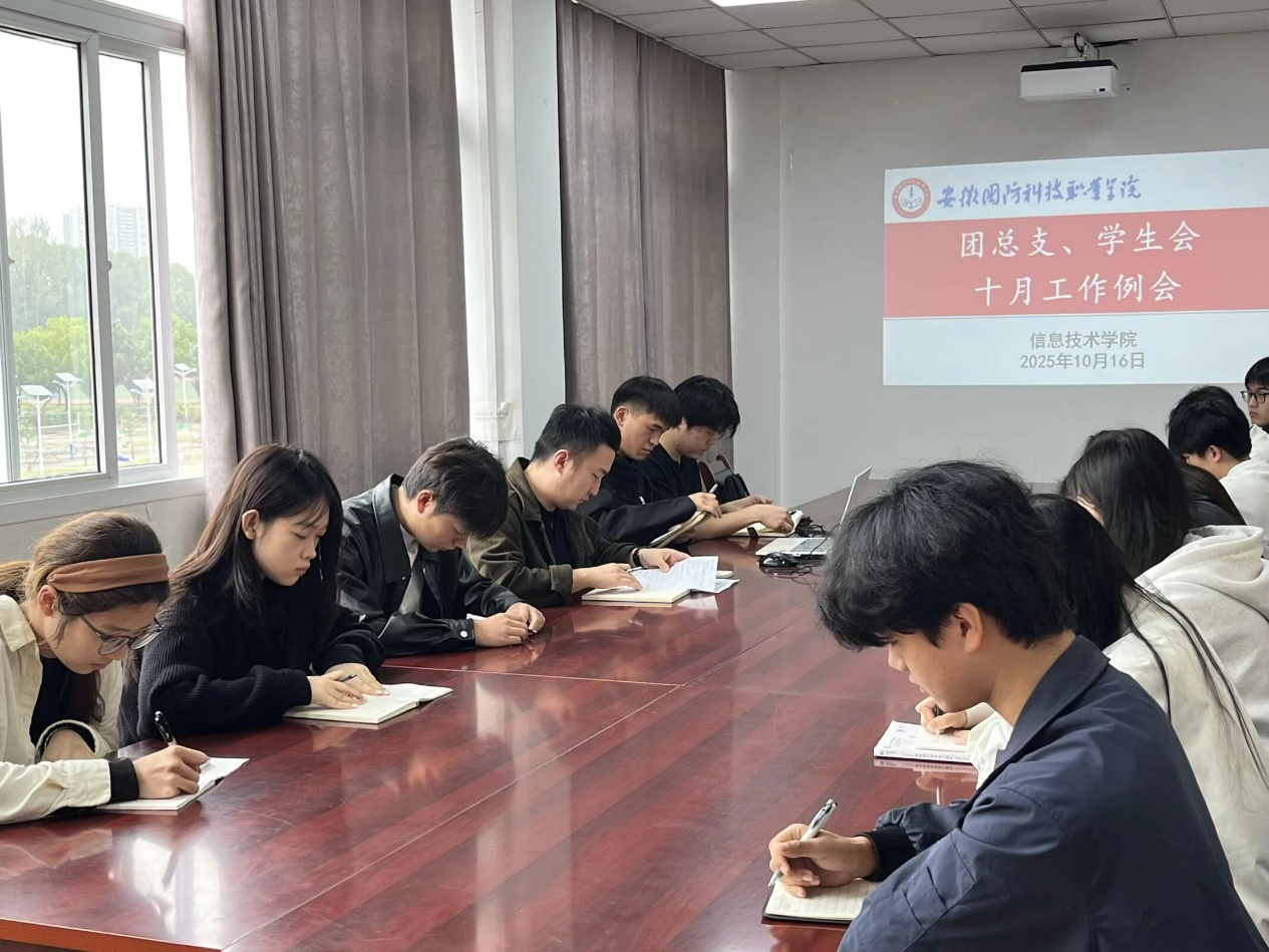 本网讯(学生通讯员 吴童周)为进一步统一团学干部思想、明确工作方向,信息技术学院于10月16日中午在知行楼304会议室顺利召开了团总支、学生会10月工作例会。此次会议旨在细化部署学生会与团总支的各项重点工作,强调工作纪律与责任担当,为后续团学工作的有序推进和高效落实奠定坚实基础。会议由团总支负责人孙颖凯主持,学院团总支、学生会全体学生干部参加了此次会议。